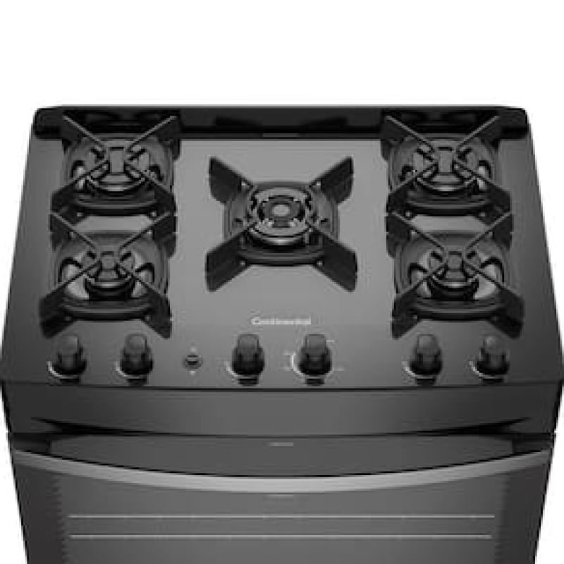 Fogão Continental 5 Bocas FC5GB Preto com Mesa de Vidro, Forno Eco Turbo e Tripla Chama Bivolt REF: 757621_Sicredi