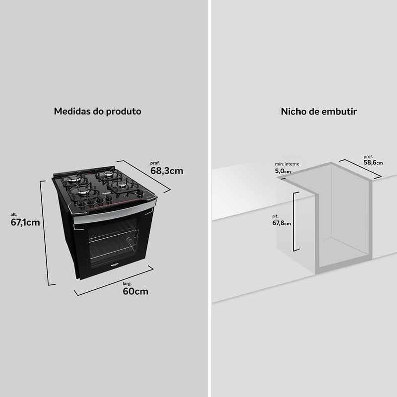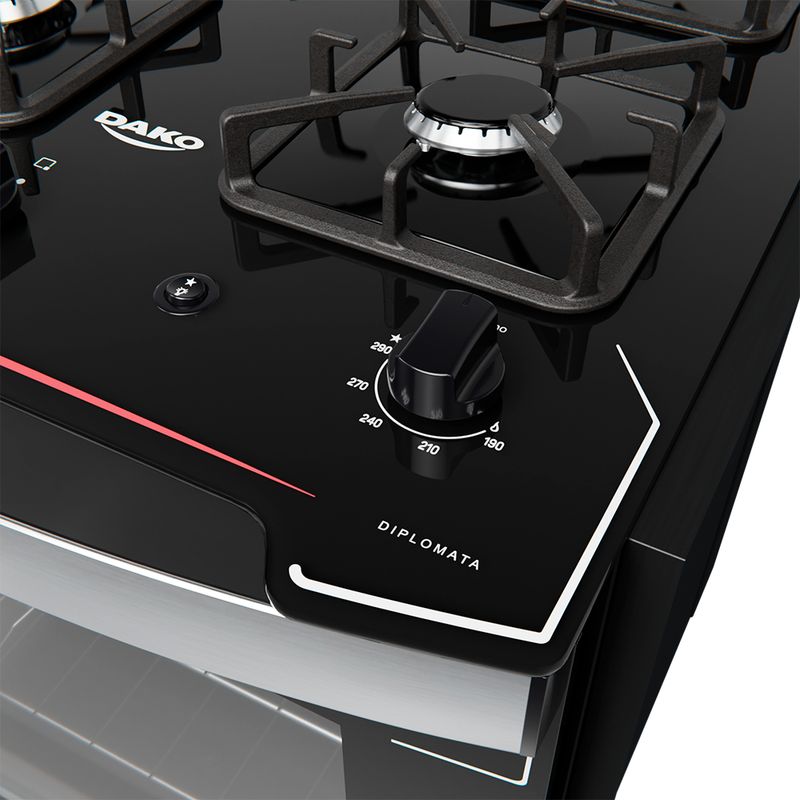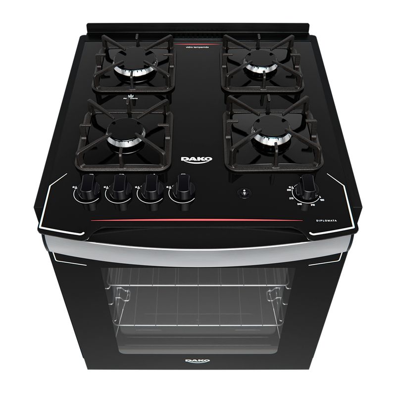 Fogão de Embutir Dako Diplomata 4 Bocas Preto Mesa de Vidro Bivolt REF: 7897180509583