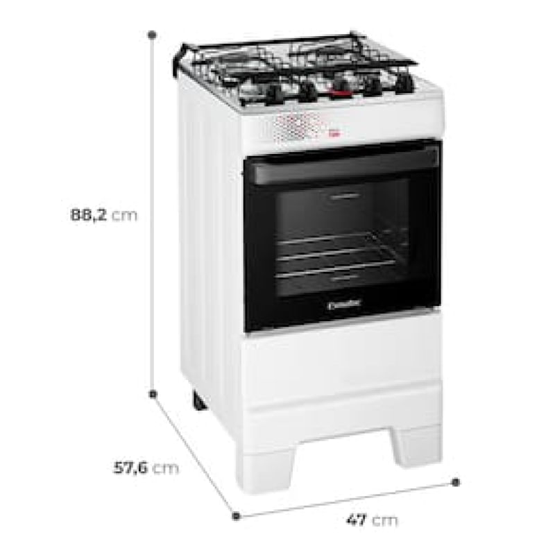 EletrodomésticosFogãoFogão Esmaltec IDEAL Top T4IAB Branco 4 Bocas com Mesa de Inox e Acendimento Automático Forno 50L Bivolt