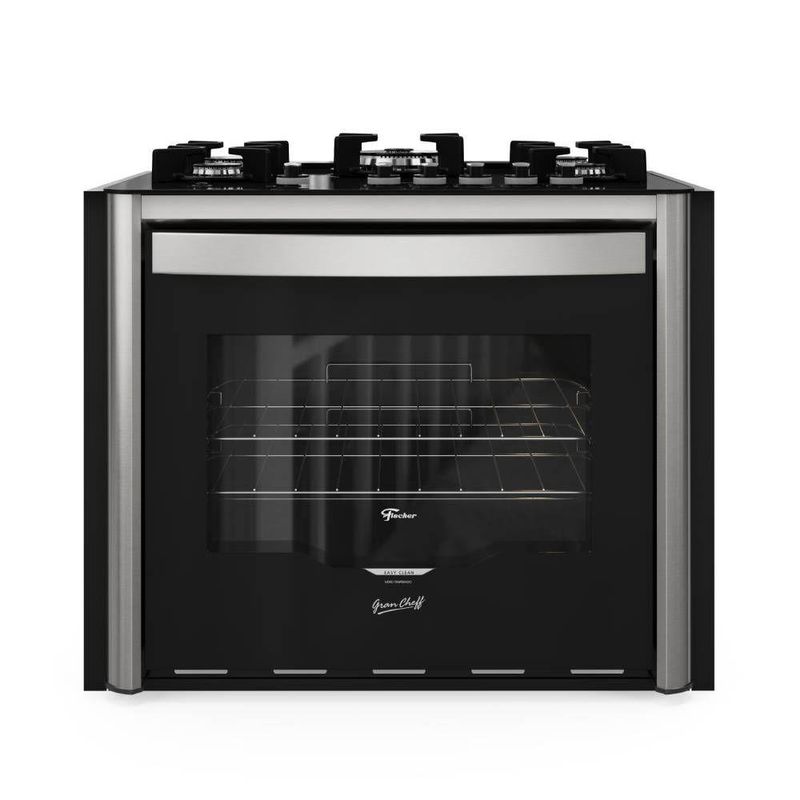 Fogão Fischer Gran Cheff de Embutir 5 Bocas Mesa de Vidro Com Dourador 110L Silver 28550-6554 REF: 7896513319974