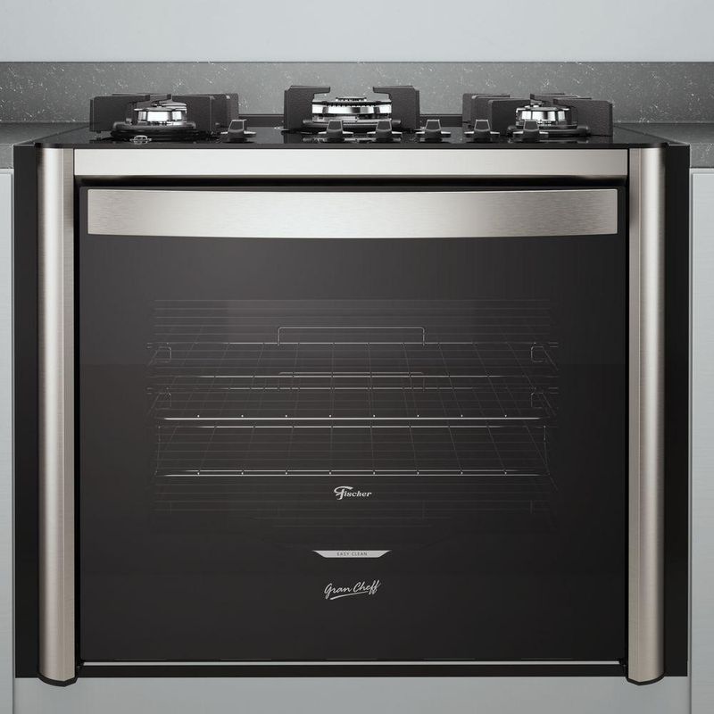 FOGAO FISCHER GRAN CHEFF DE EMBUTIR 5 BOCAS SILVER MESA DE VIDRO COM DOURADOR 127V (28550 - 65542) REF: 7896513319981