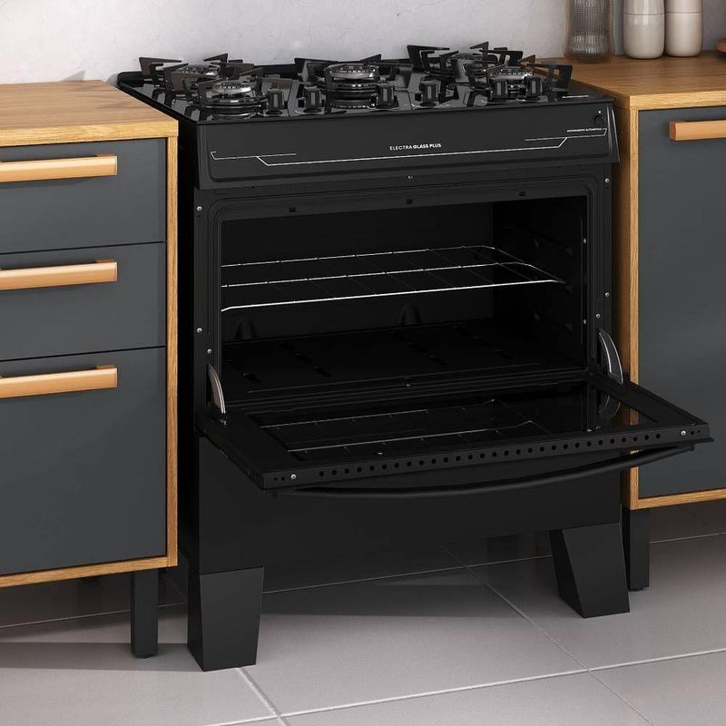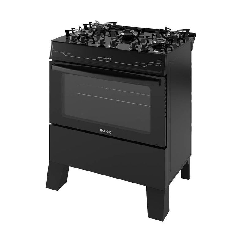 Fogão Itatiaia Electra Glass Plus Piso 5 Bocas Preto Mesa de Vidro - Bivolt (3700000486) REF: 7892946459348