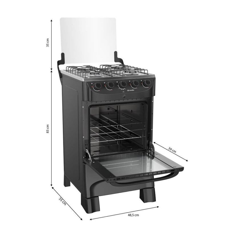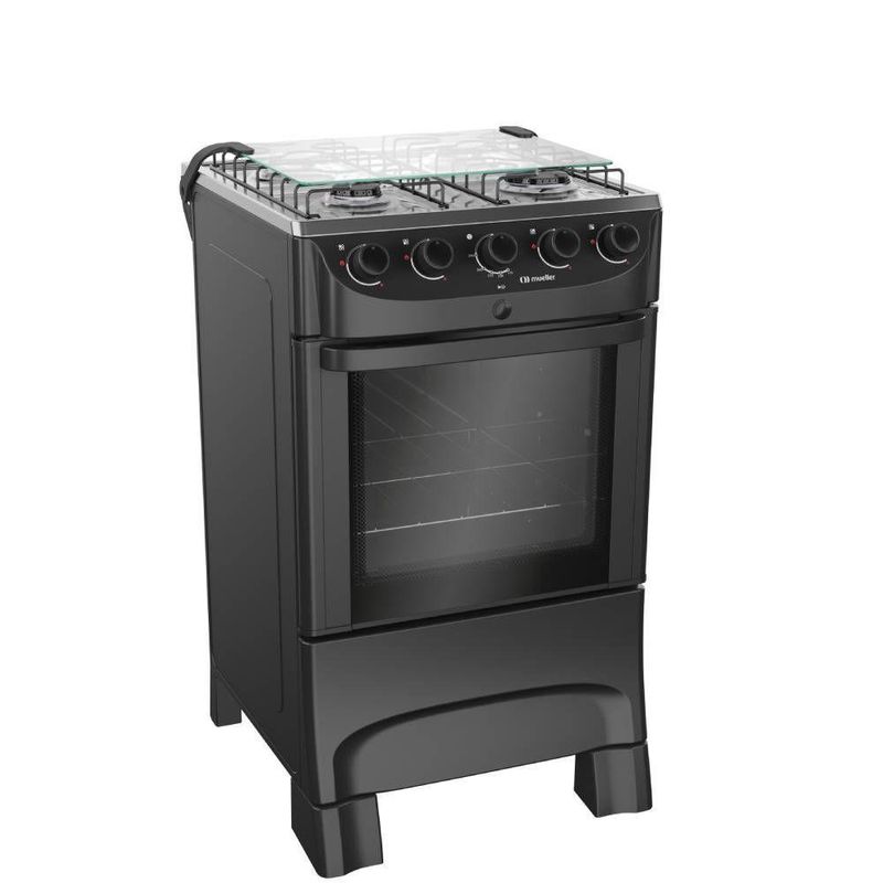 Fogao Mueller 4 Bocas Preto Mesa de Inox com Acendimento Automático Bivolt (MFI4BB) REF: 7908156904711