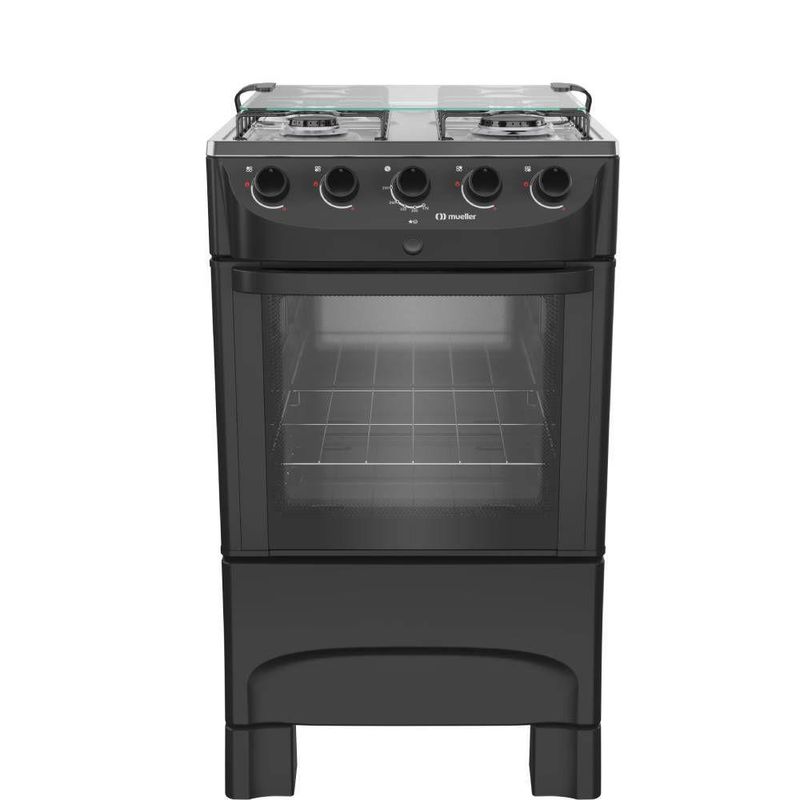 EletrodomésticosFogãoFogao Mueller 4 Bocas Preto Mesa de Inox com Acendimento Automático Bivolt (MFI4BB)
