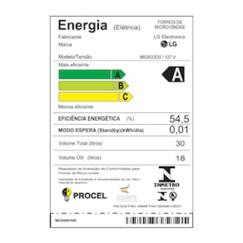 Forno de Micro-ondas LG NeoChef MS3033D com Função limpa fácil e Receitas Pré-programadas - 30 litros REF: 546116_Sicredi