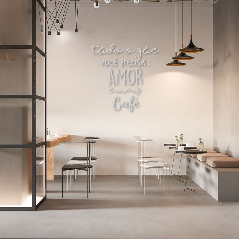 Casa e DecoraçãoDecoraçãoQuadros e PlacasFrase de Parede em Relevo Amor e Café 200x196 Cinza