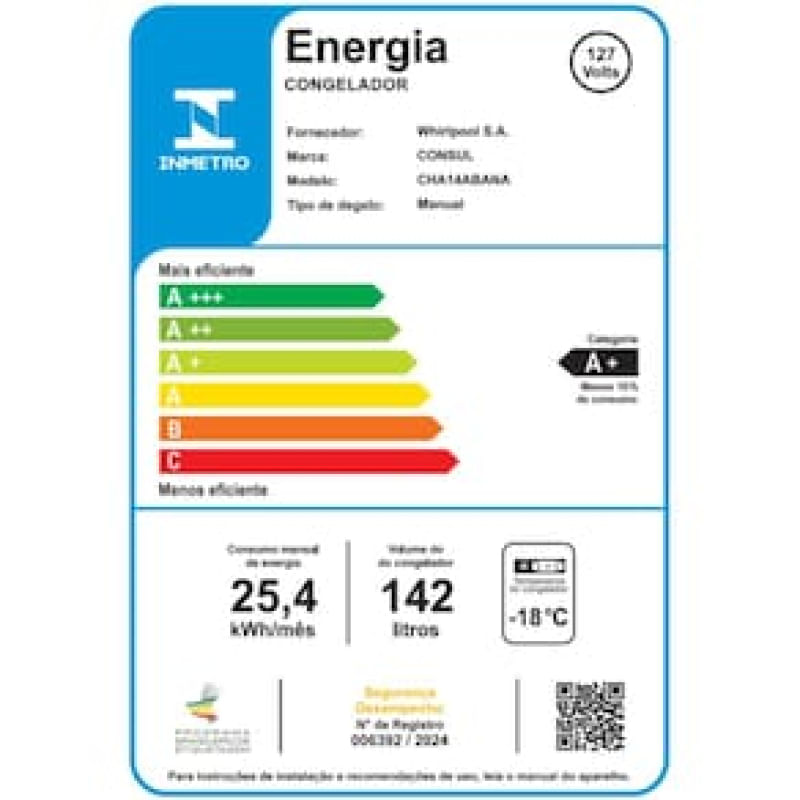 Freezer Horizontal 142L Consul CHA14AB Luz de LED Econômico Painel Eletrônico Gás Ecológico Branco REF: 759656_Sicredi