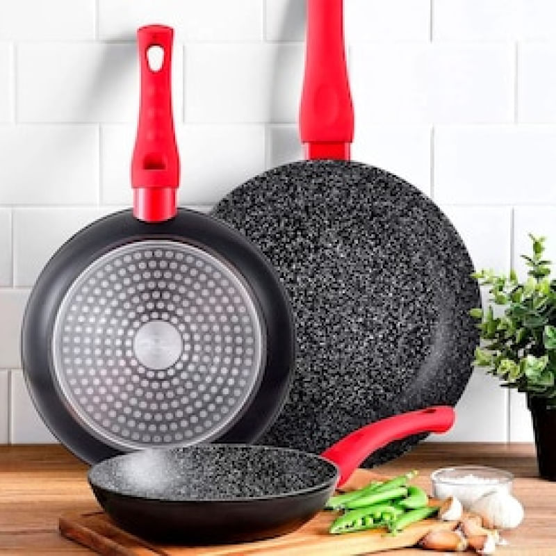 Casa e DecoraçãoUtilidades DomésticasJogo de PanelasFrigideira Bergner Toledo em Alumínio Forjado com Revestimento em Marble e Fundo de Indução 24 cm Preta