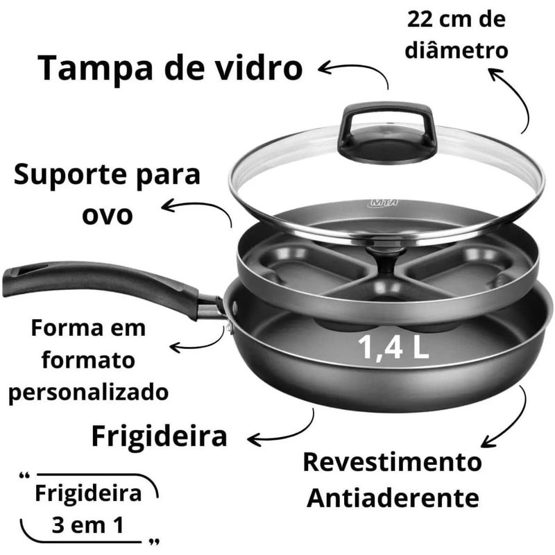 Frigideira de Alumínio Antiaderente 4 Ovos Pochê Coração 22cm - MTA REF: 7897186608839