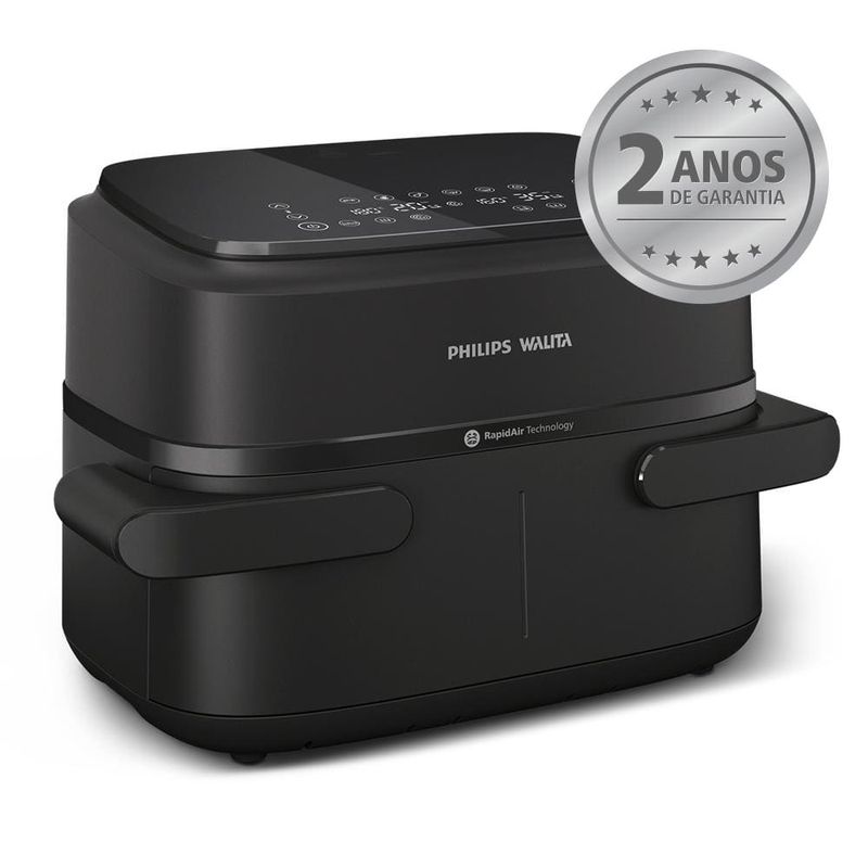 Fritadeira Airfryer Philips Walita Série 1000 NA150 7,1L 1850W Cesto Duplo Preta REF: 8720389054099