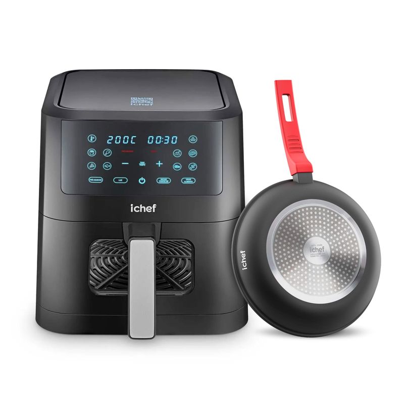 EletroportáteisFritadeira elétricaFritadeira Elétrica Airfryer Ichef Smart Vision 6L e Panelas First Saute Grand 24cm e Sauté Petit 20cm