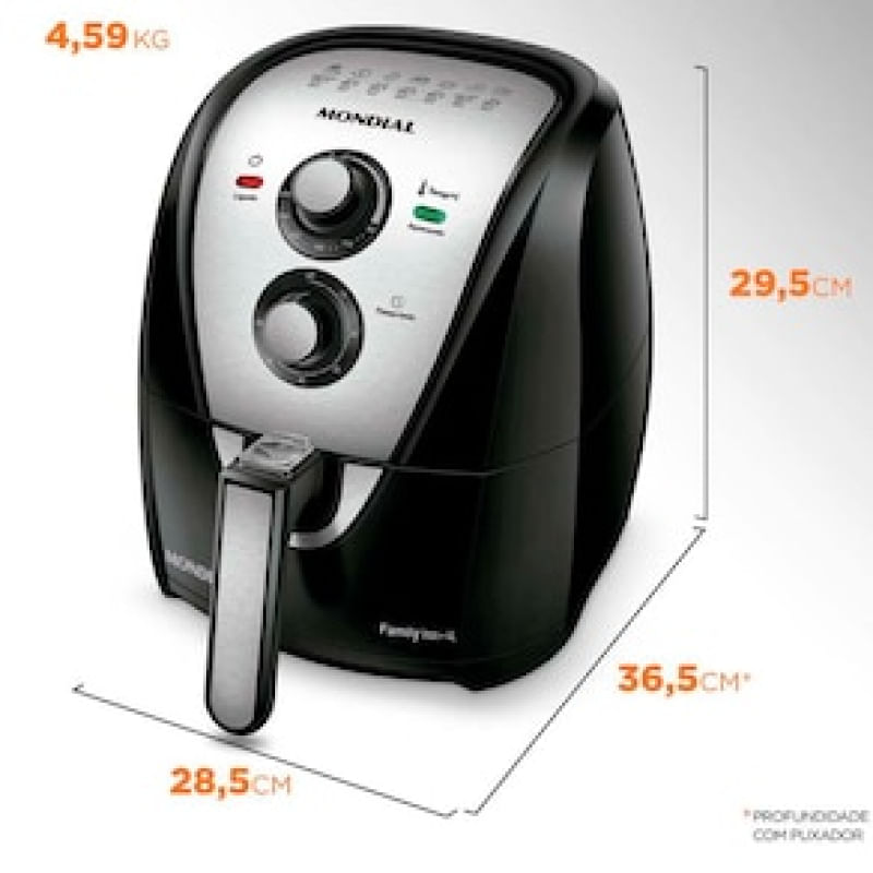 Fritadeira Elétrica Sem Óleo Air Fryer Mondial AFN40BI Family Inox 4L - Preta/Inox REF: 155747_Sicredi