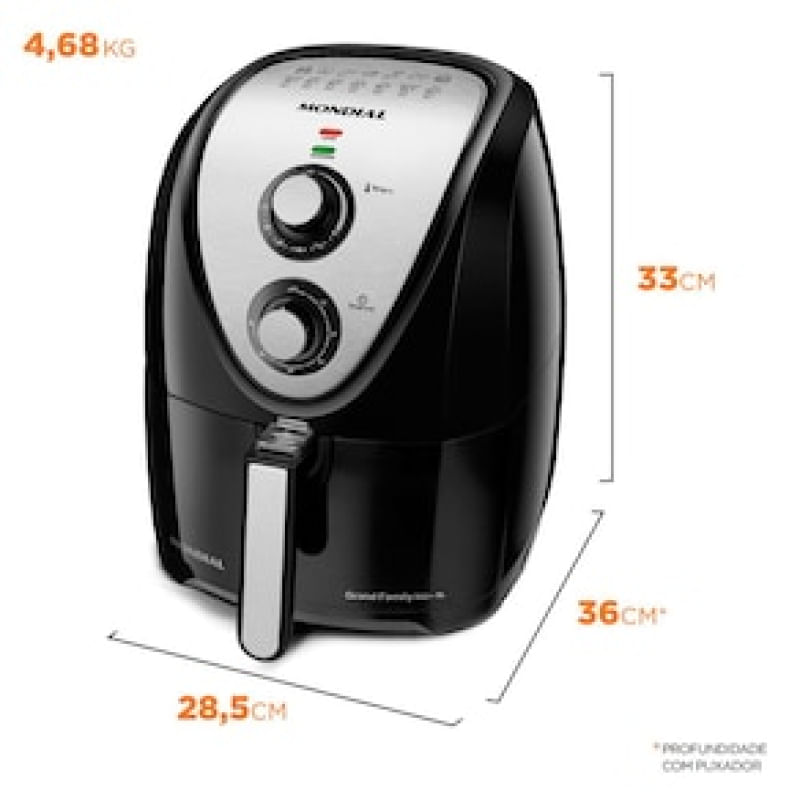 EletroportáteisFritadeira elétricaFritadeira Elétrica Sem Óleo Mondial AFN-50 Grand Family Inox 5L - Preta