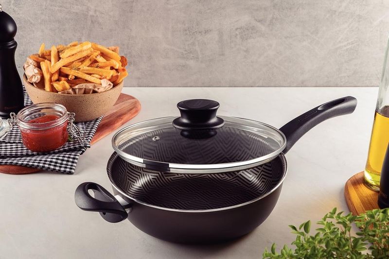 Fritadeira Multiuso Tramontina Paris 24cm em Alumínio com Revestimento Antiaderente com Tampa de Vidro Chumbo REF: 7891112298200