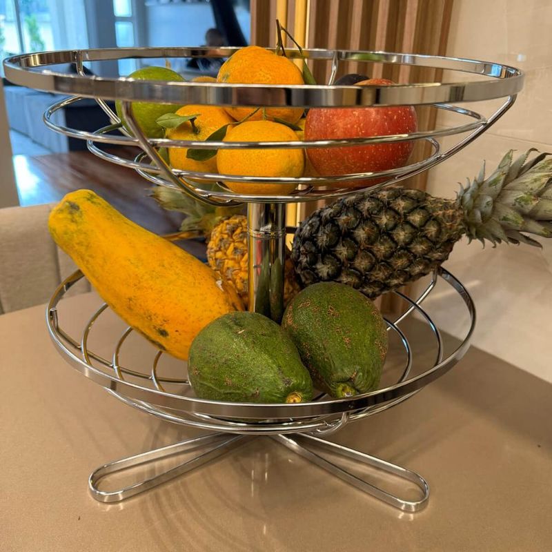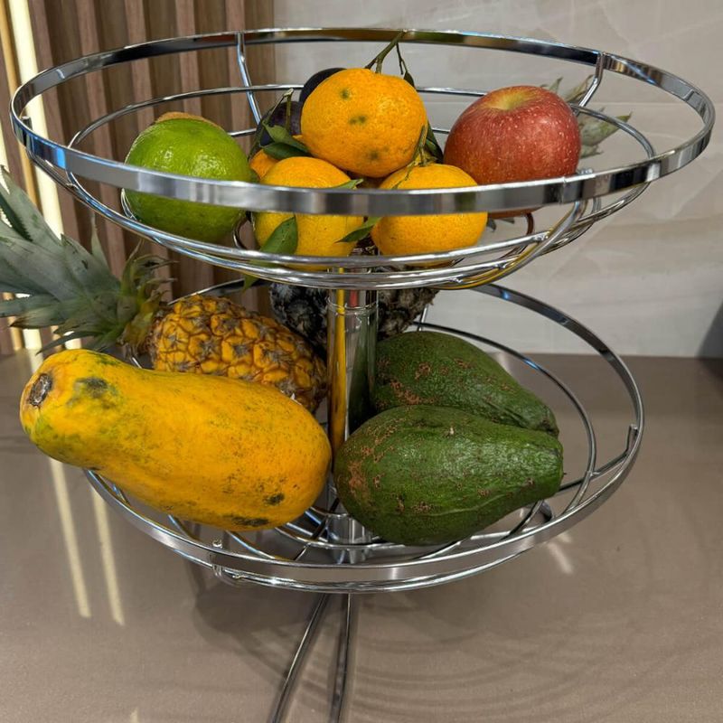 Fruteira Dupla de Mesa Redonda Giratória Cromada Piatina Giosul para Bancada 2 Andares Legumeira REF: 7898032678426