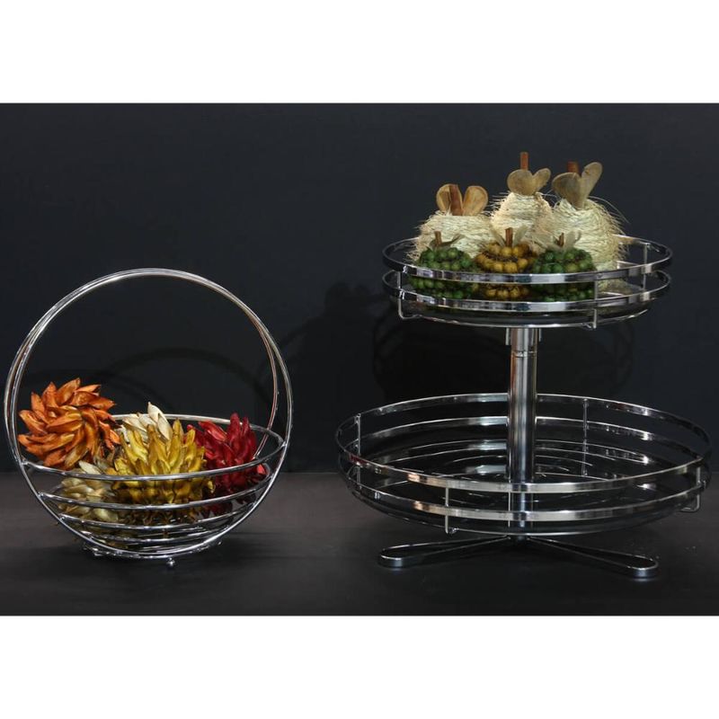 Fruteira Dupla Redonda de Mesa Bancada Cromada Giosul Aramada Piatina 2 Andares REF: 7898032677283