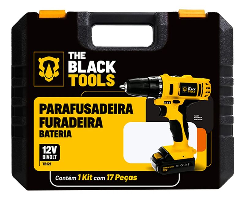 Furadeira Parafusadeira Sem Fio Bateria Tb-12E 12v 3/8 10mm The Black Tools + Jogo Soquetes 40 Peças - Bivolt REF: 920697_Sicredi
