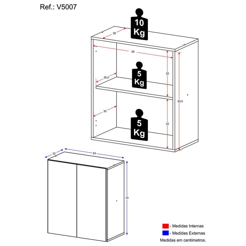 Gabinete Banheiro 2 Portas Suspenso 63cm Multimóveis V5007 REF: 572495_Sicredi