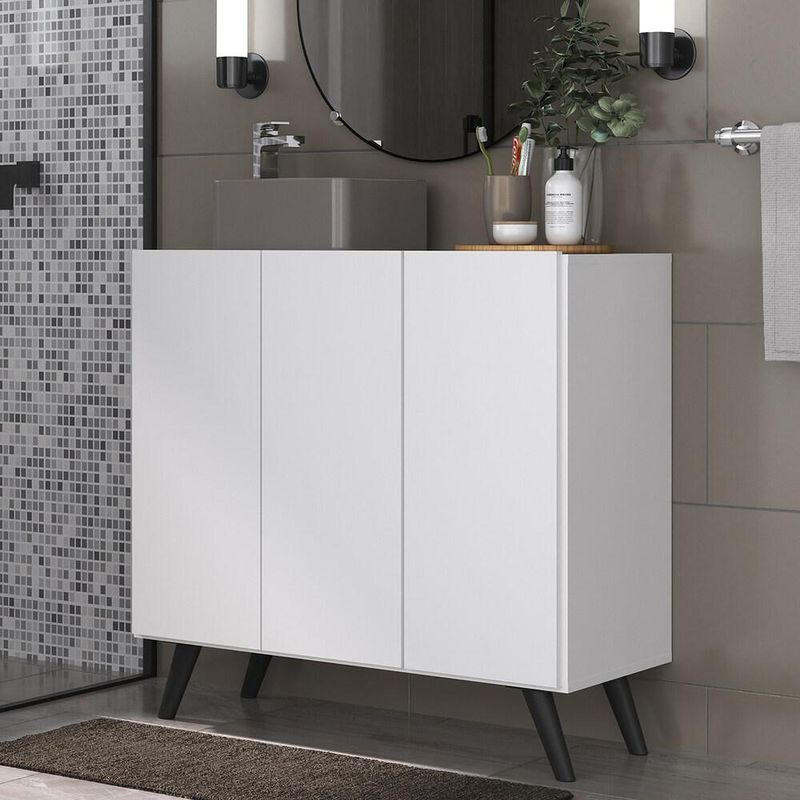 Casa e DecoraçãoMóveisArmário de BanheiroGabinete Banheiro 3 Portas Retrô 90cm Multimóveis MP5030 Branco/Preto