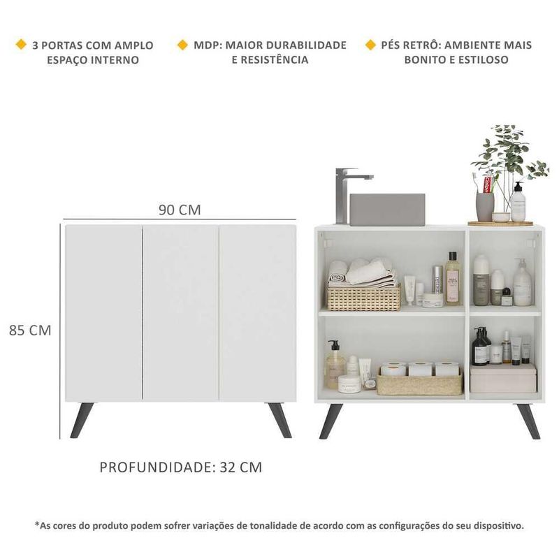 Gabinete Banheiro 3 Portas Retrô 90cm Multimóveis MP5030 Branco/Preto REF: 569580_Sicredi