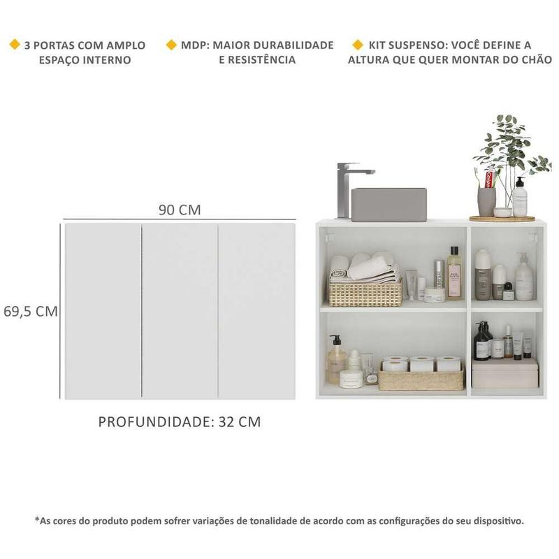 Casa e DecoraçãoMóveisArmário de BanheiroGabinete Banheiro 3 Portas Suspenso 90cm Multimóveis V5029