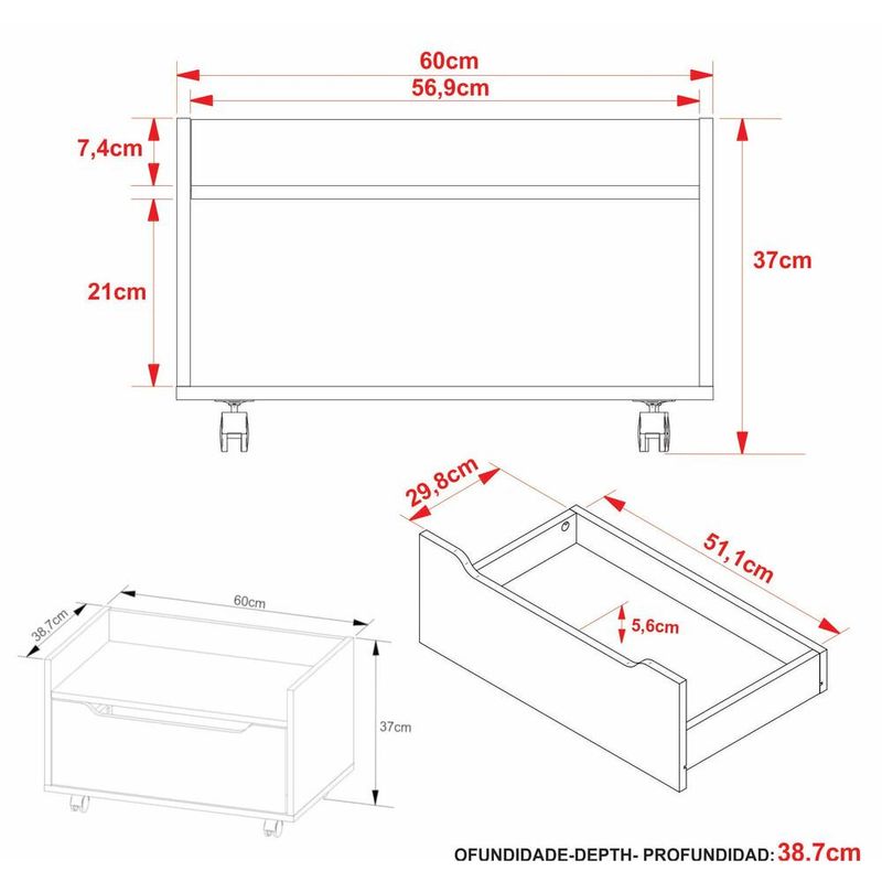 Gabinete Banheiro 60cm com 1 Gaveta e Rodízios Multimóveis CR10124 REF: 768245_Sicredi