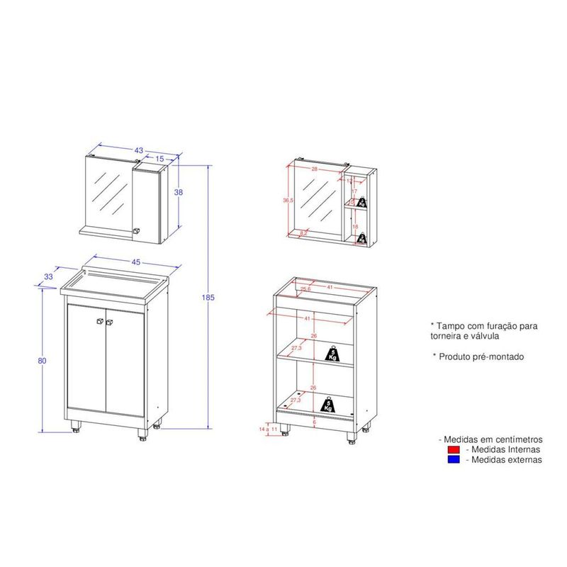 Gabinete Banheiro com Cuba e Espelheira 45cm Multimóveis CR10057 Branco REF: 767630_Sicredi