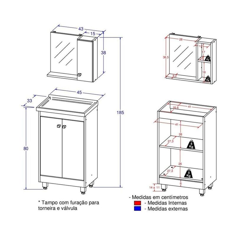 Casa e DecoraçãoMóveisArmário de CozinhaGabinete Banheiro com Cuba e Espelheira 45cm Multimóveis CR10100