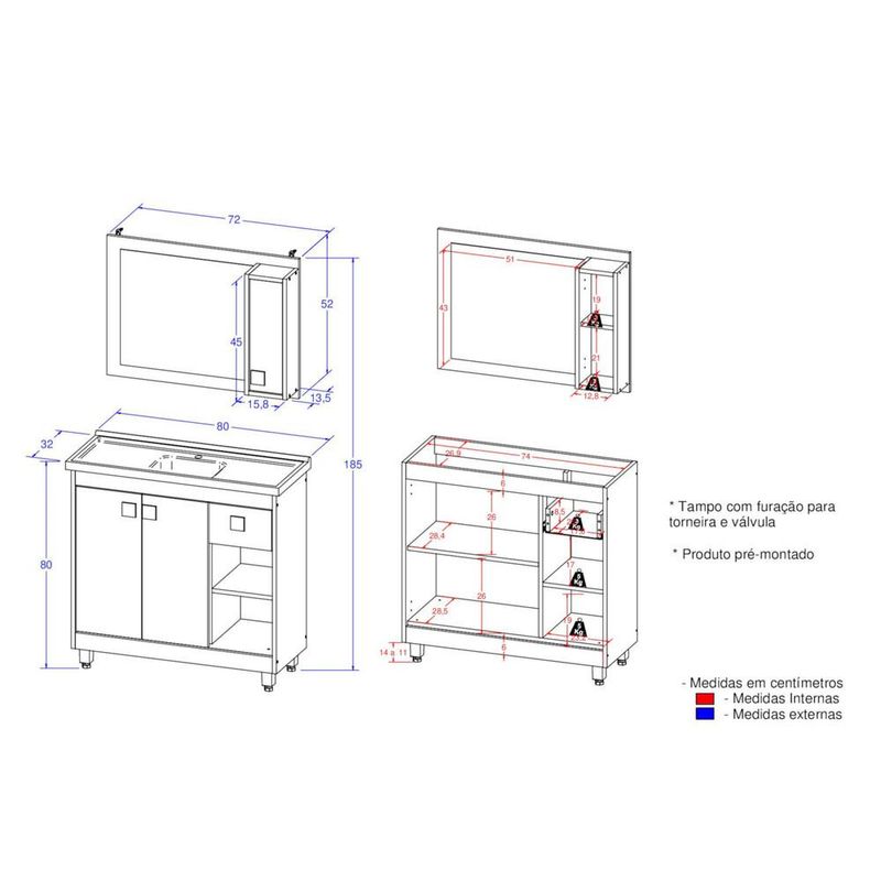 Gabinete Banheiro com Cuba e Espelheira 80cm Multimóveis CR10059 Castanho Argel/Branco REF: 767812_Sicredi