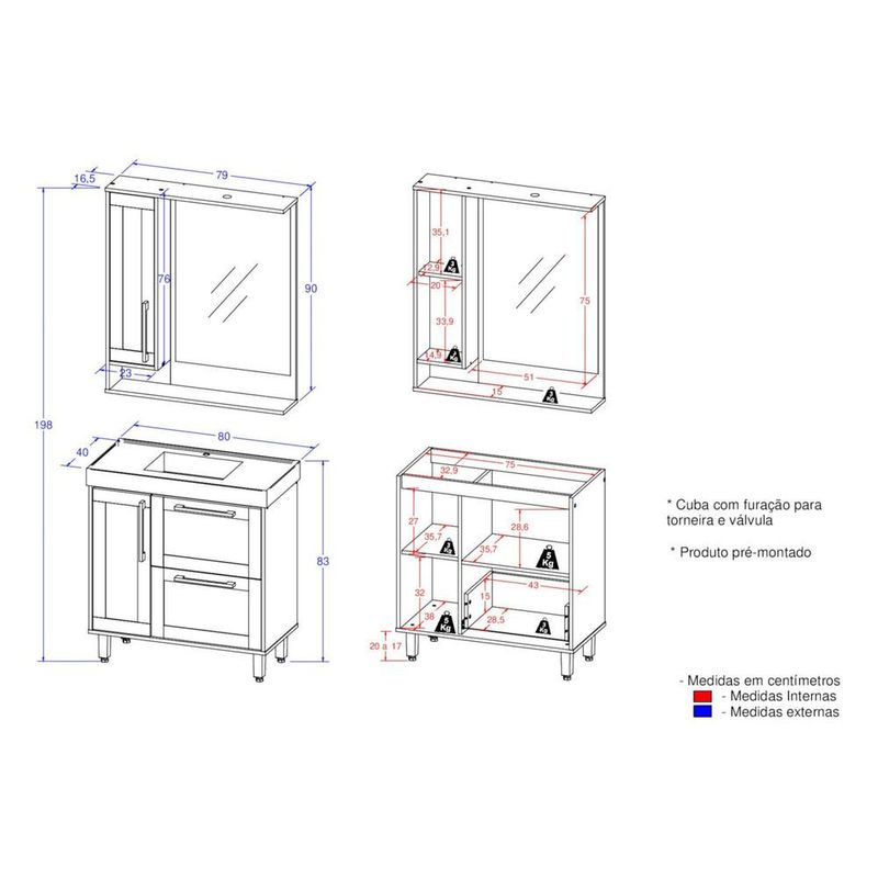 Casa e DecoraçãoMóveisArmário de BanheiroGabinete Banheiro com Cuba e Espelheira 80cm Multimóveis CR10064 Mel/Grafite