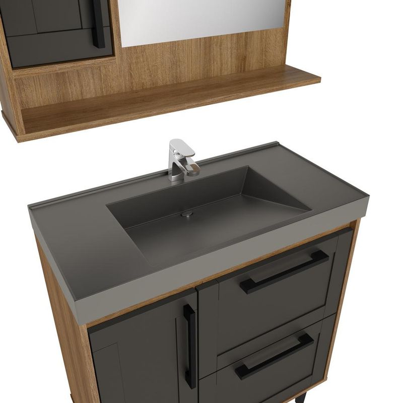 Gabinete Banheiro com Cuba e Espelheira 80cm Multimóveis CR10064 Mel/Grafite REF: 572752_Sicredi
