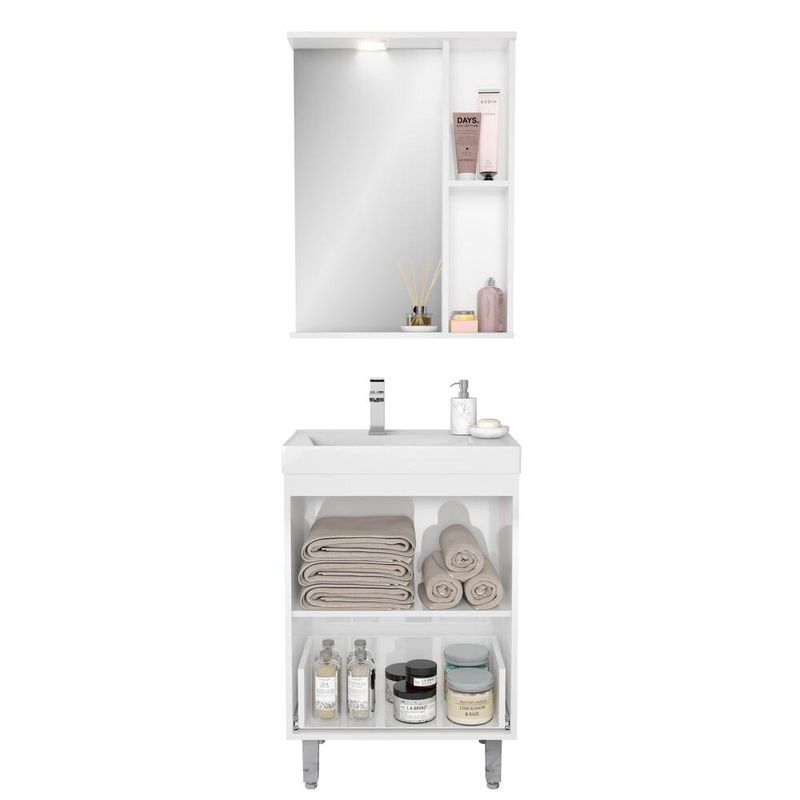 Casa e DecoraçãoMóveisEstante e LivreiroGabinete Banheiro com Cuba e Espelheira Multimóveis CR10060 Branco/Legno Crema