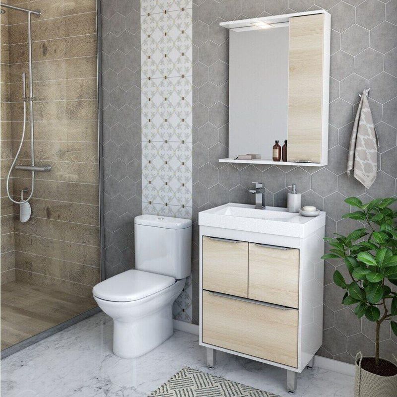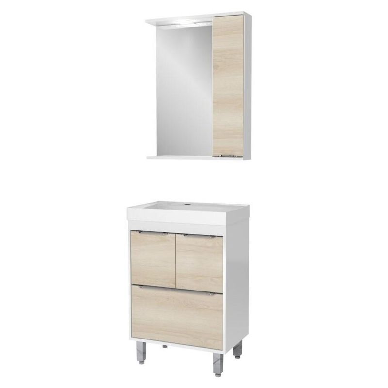 Gabinete Banheiro com Cuba e Espelheira Multimóveis CR10060 Branco/Legno Crema REF: 767597_Sicredi