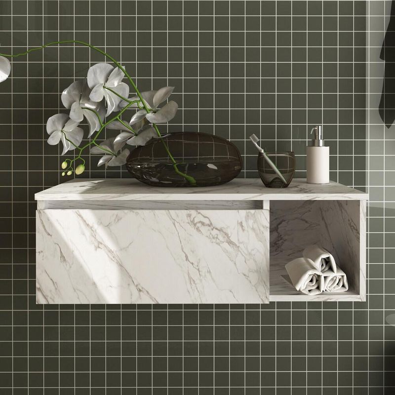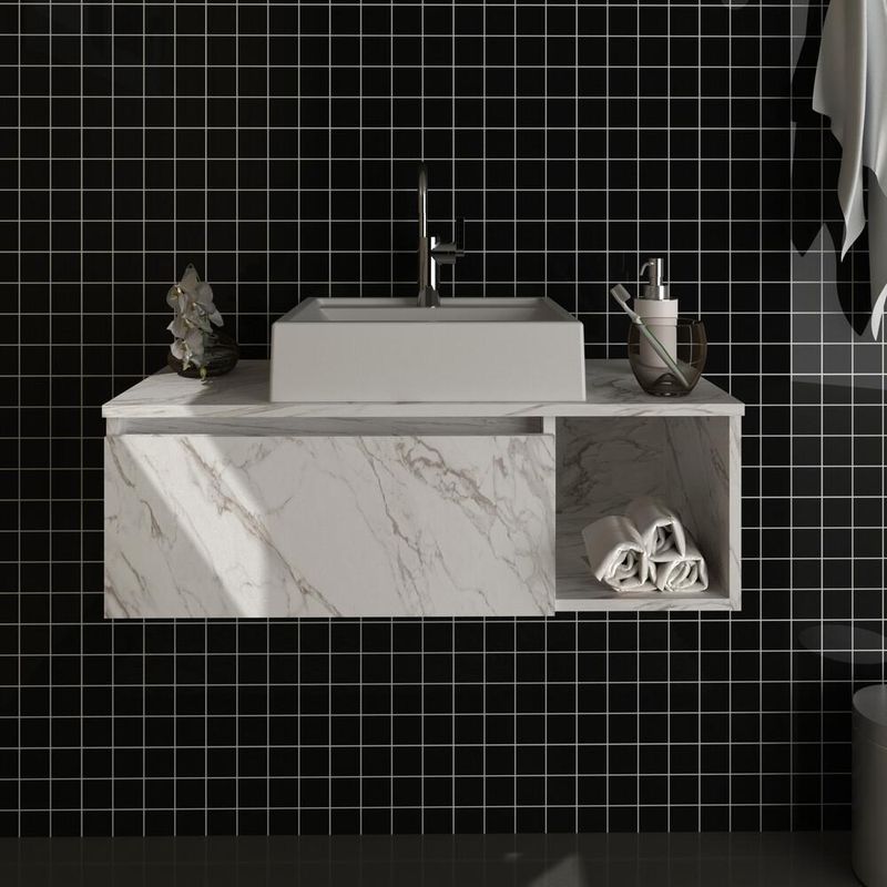 Gabinete Banheiro Suspenso 80cm Multimóveis CR10081 Mármore Branco REF: 572662_Sicredi