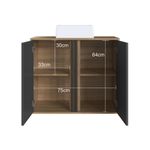 Gabinete de Banheiro 80cm Antônia com Espelheira 02 portas Mel/Grafite e Cuba Branca REF: 7898744952470