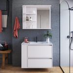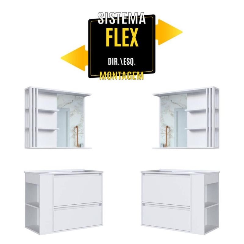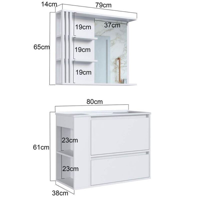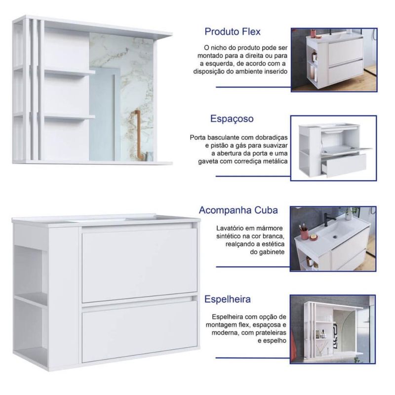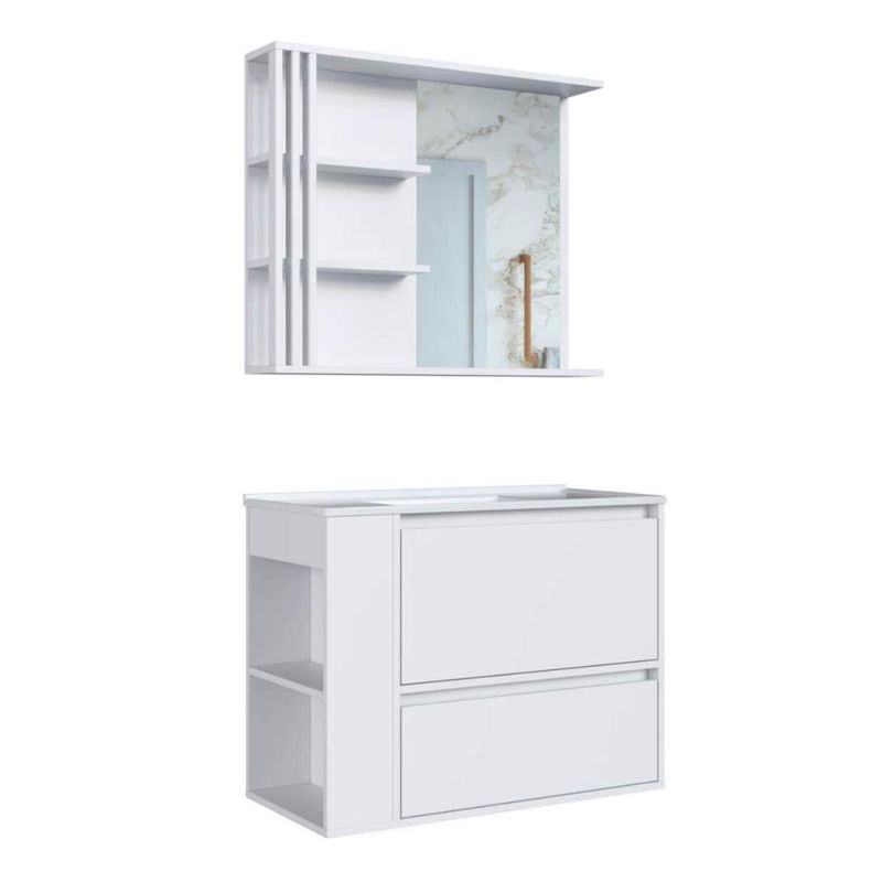 Gabinete De Banheiro 80cm Estela Branco Lavatório Espelheira com 1 Gavetão E Basculante REF: 7898744951800