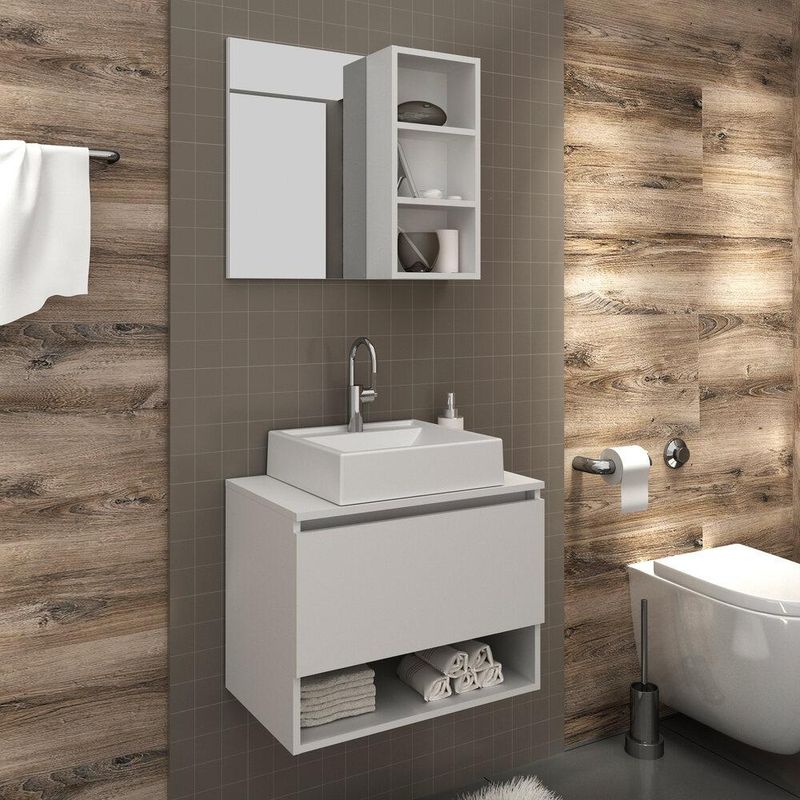 Gabinete de Banheiro com Cuba e Espelheira 60cm Multimóveis CR10096 REF: 572597_Sicredi