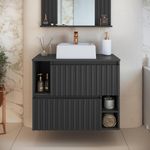 Gabinete De Banheiro Suspenso 75cm Luiza Grafite Cuba Branca e 2 Portas Basculante REF: 7898744951404