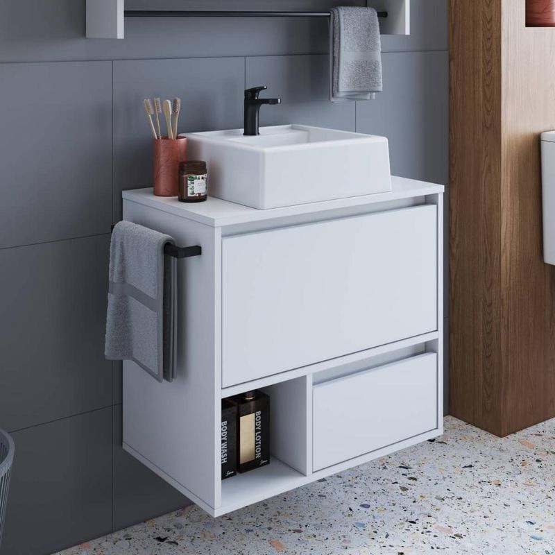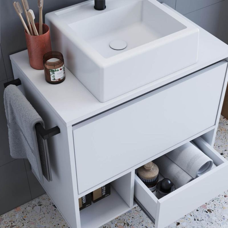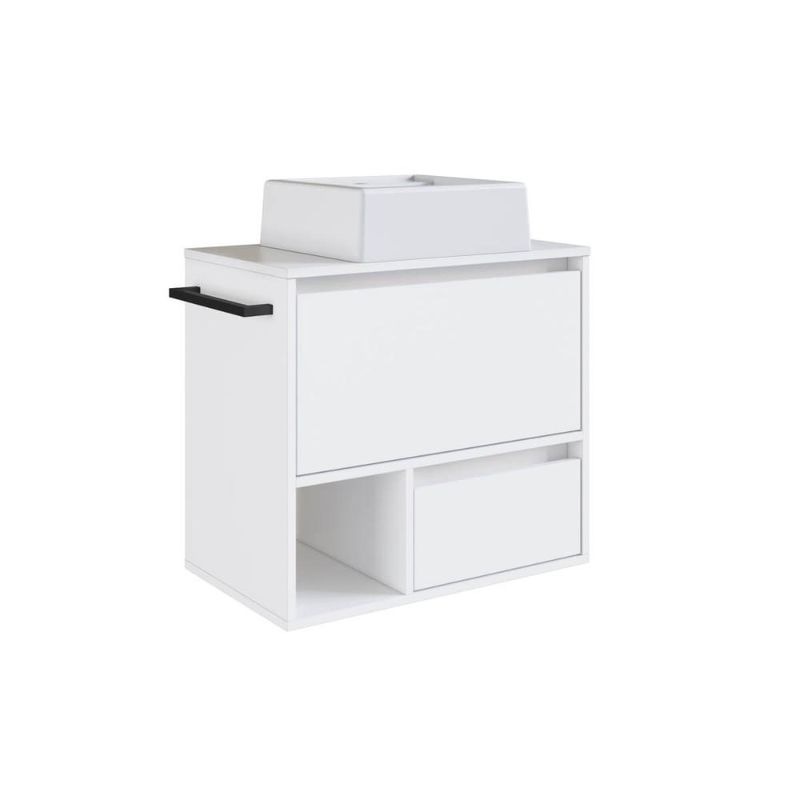 Casa e DecoraçãoMóveisBalcão e GabineteGabinete de Banheiro Suspenso Branco 60cm com Cuba e Toalheiro 1 Porta e 1 Gaveta