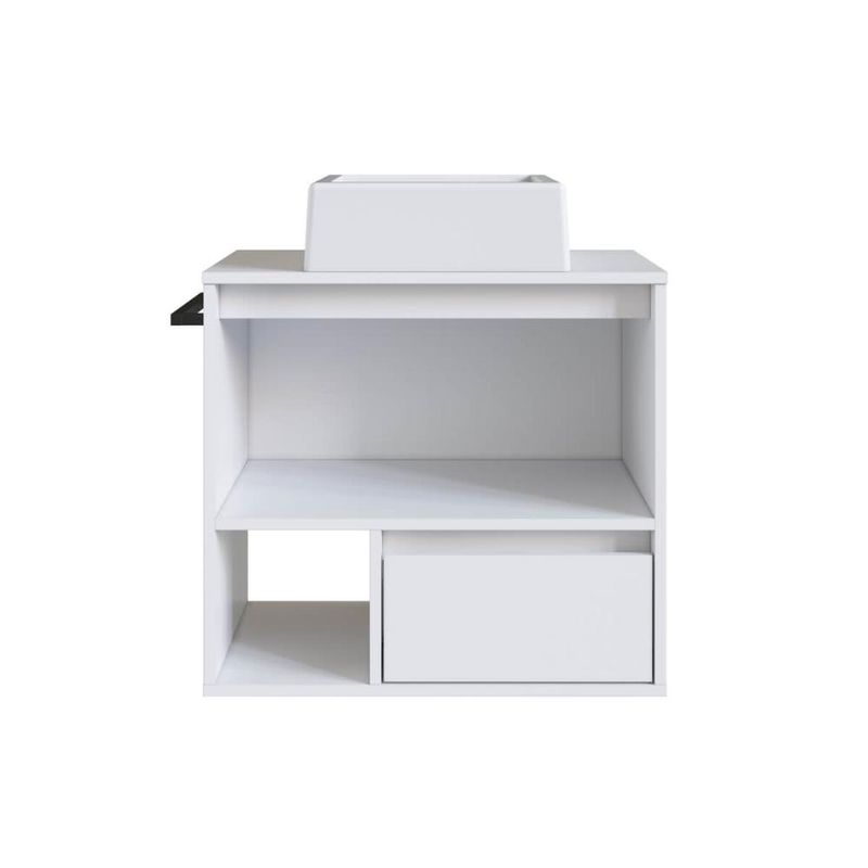 Gabinete de Banheiro Suspenso Branco 60cm com Cuba e Toalheiro 1 Porta e 1 Gaveta REF: 7898758440529