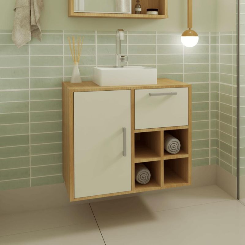 Casa e DecoraçãoMóveisBalcão e GabineteGabinete Suspenso 68cm Eduarda Mel Arenas Cuba Branca Porta Gaveta Nicho Aberto De Banheiro