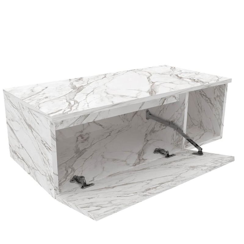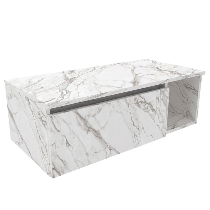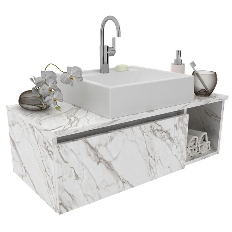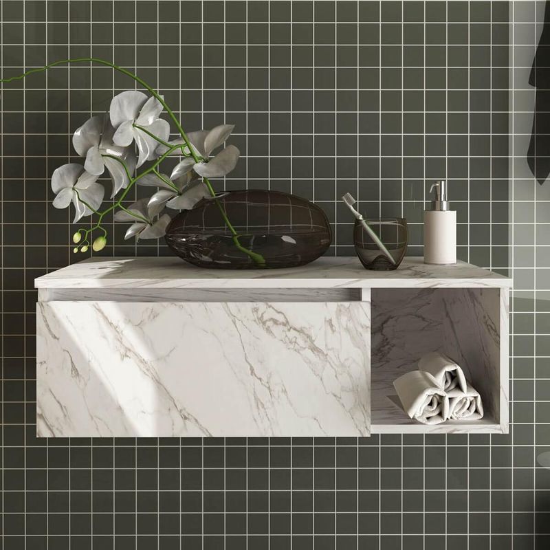 Gabinete Suspenso de Banheiro em MDP 80cm Branco Marmorizado com 1 Porta e Nicho Lateral Balcão Sem Cuba REF: 7908212520848