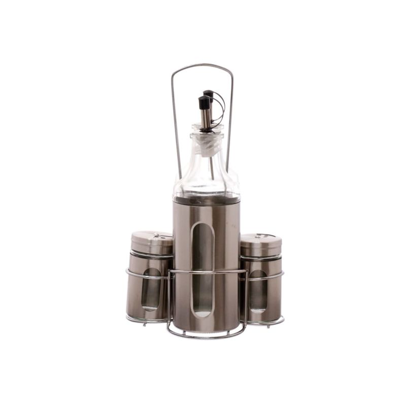 Galheteiro de Vidro com Suporte de Aço - Conjunto de 4 Peças REF: 701149_Sicredi