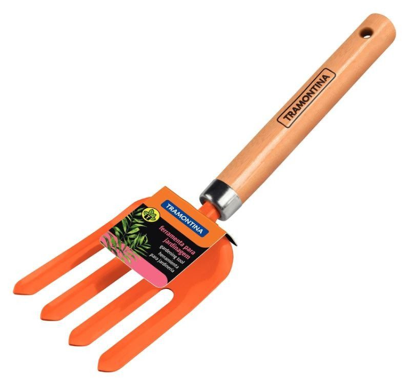 Garfo com 4 Dentes Para Jardinagem Tramontina em Aço com Cabo de Madeira REF: 7891117000181