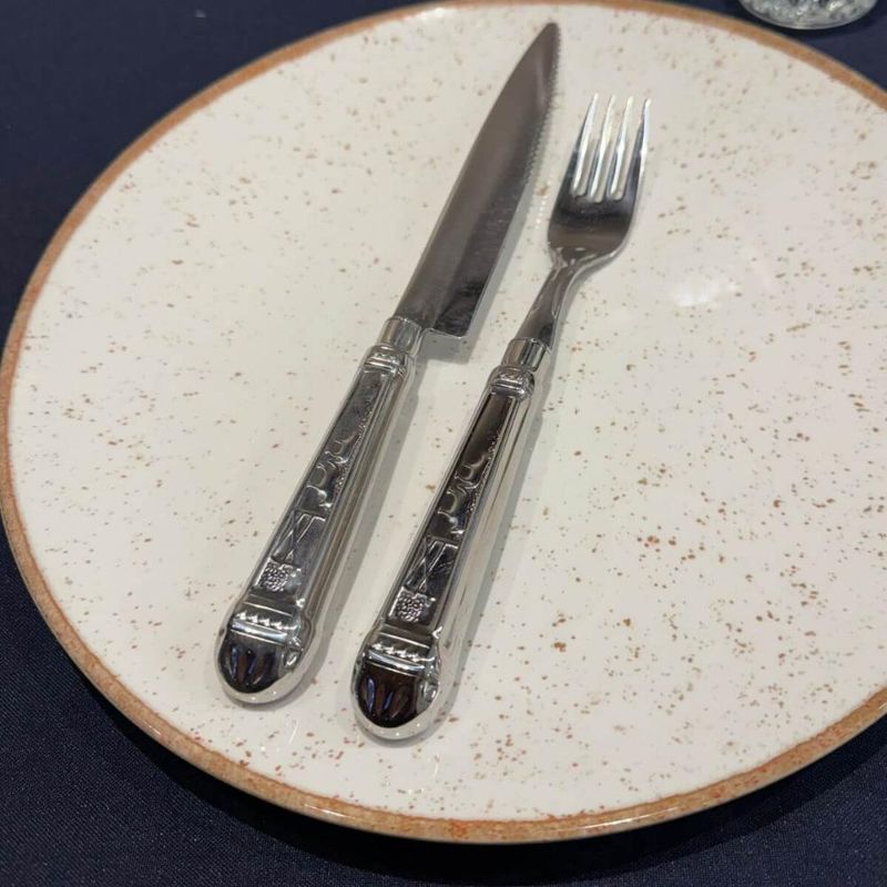 Garfo Mesa Churrasco 20cm Aço Inox Cabo Prateado Servir Mesa Churrascaria REF: 7898775144196