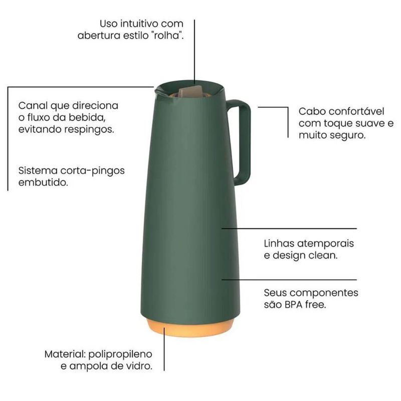 Garrafa Térmica 1L em Plástico com Ampola de Vidro Bule Térmico Tramontina Verde REF: 7891116169568