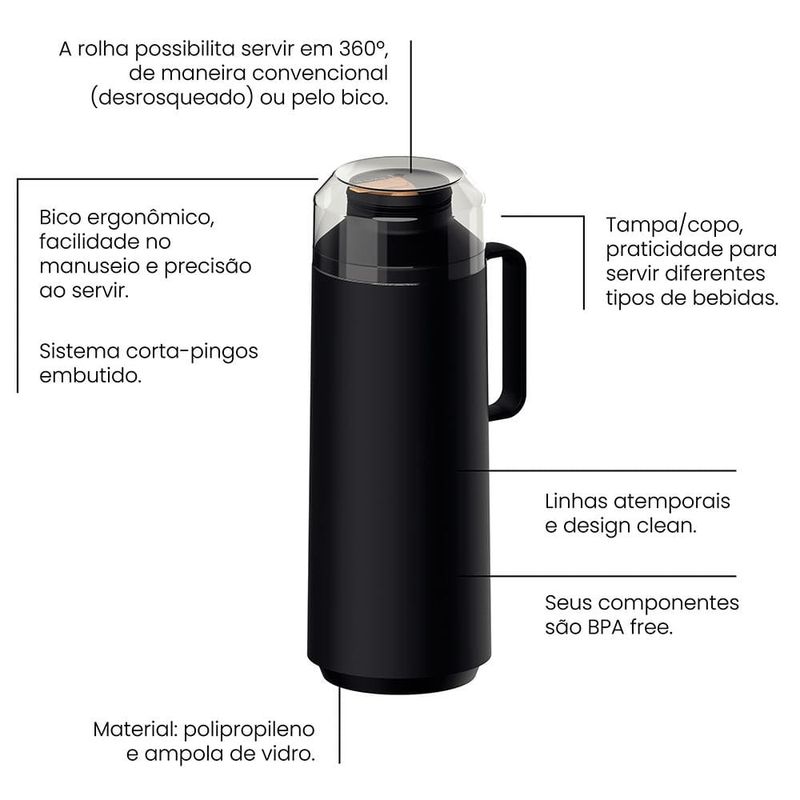 Garrafa Térmica Tramontina Exata em Polipropileno Preta 1 L REF: 236679_Sicredi