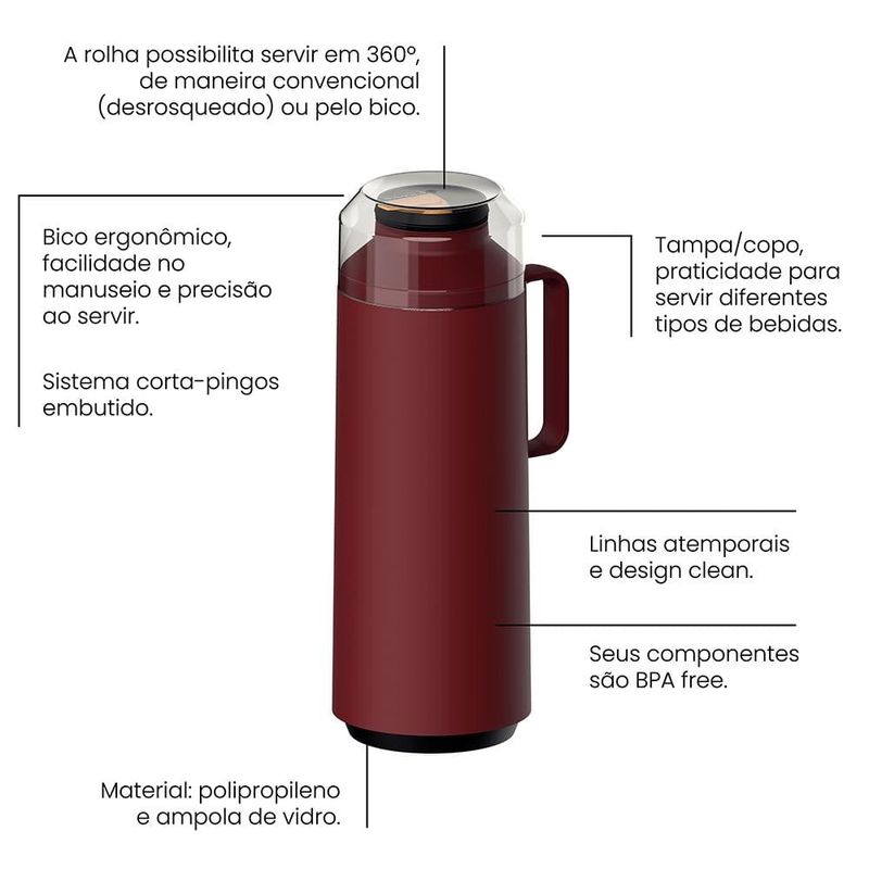 Garrafa Térmica Tramontina Exata em Polipropileno Vinho 1 L REF: 236680_Sicredi