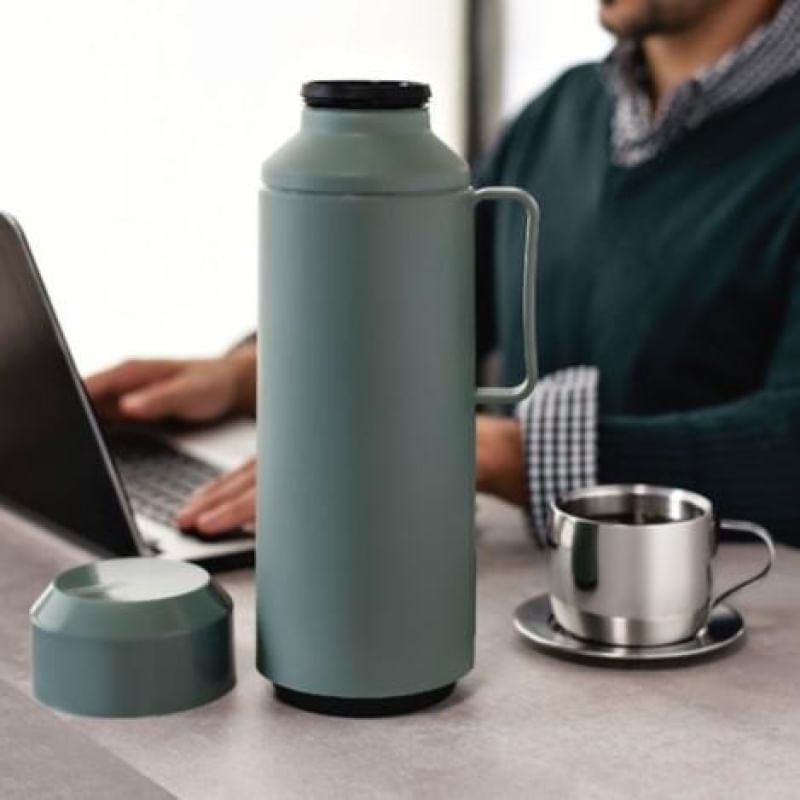 Garrafa Térmica Tramontina Exata Verde com Ampola de Vidro e Tampa Rosqueável 1 Litro REF: 7891116175262