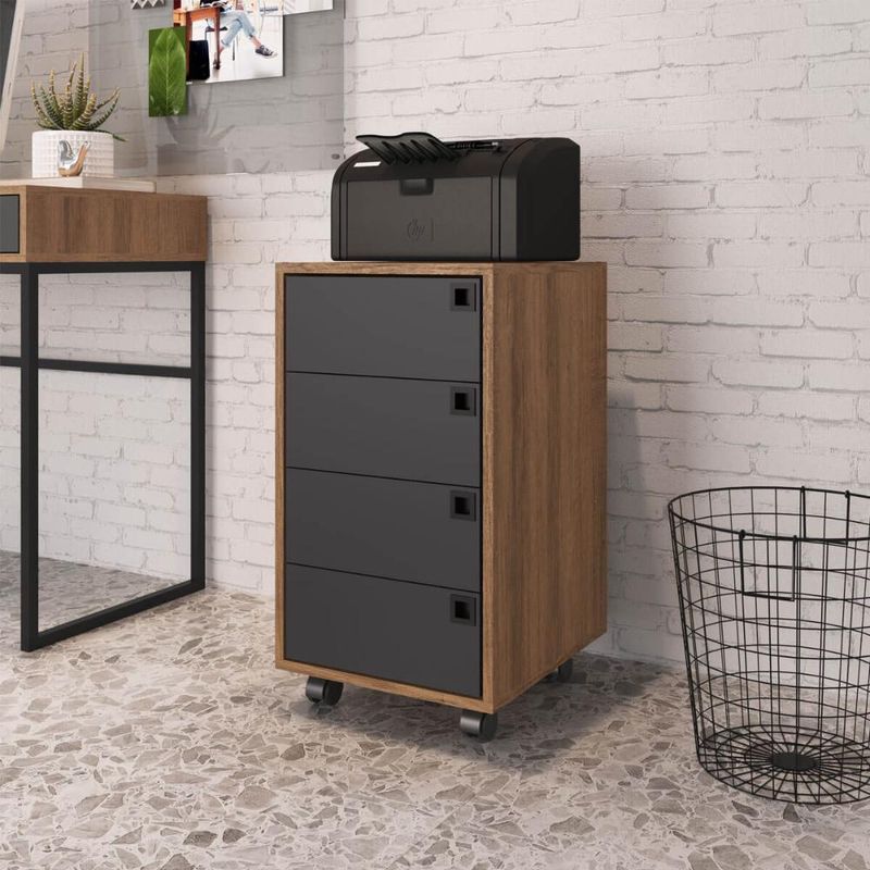 Gaveteiro Organizador 4 Gavetas Grafite E Mel 36cm Rodízios Placa E Ponto Office Gaveteiro Para Escritório REF: 7898270100048